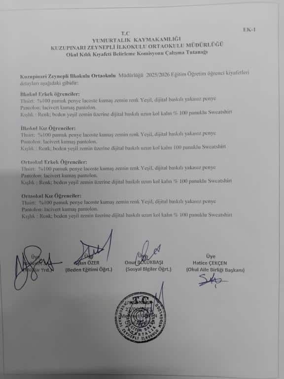2025-2026 EĞİTİM ÖĞRETİM YILINDAN İTİBAREN OKULUMUZDA UYGULANMAYA BAŞLAYACAK OLAN ÖĞRENCİ KILIK KIYAFETİNE İLİŞKİN DUYURU